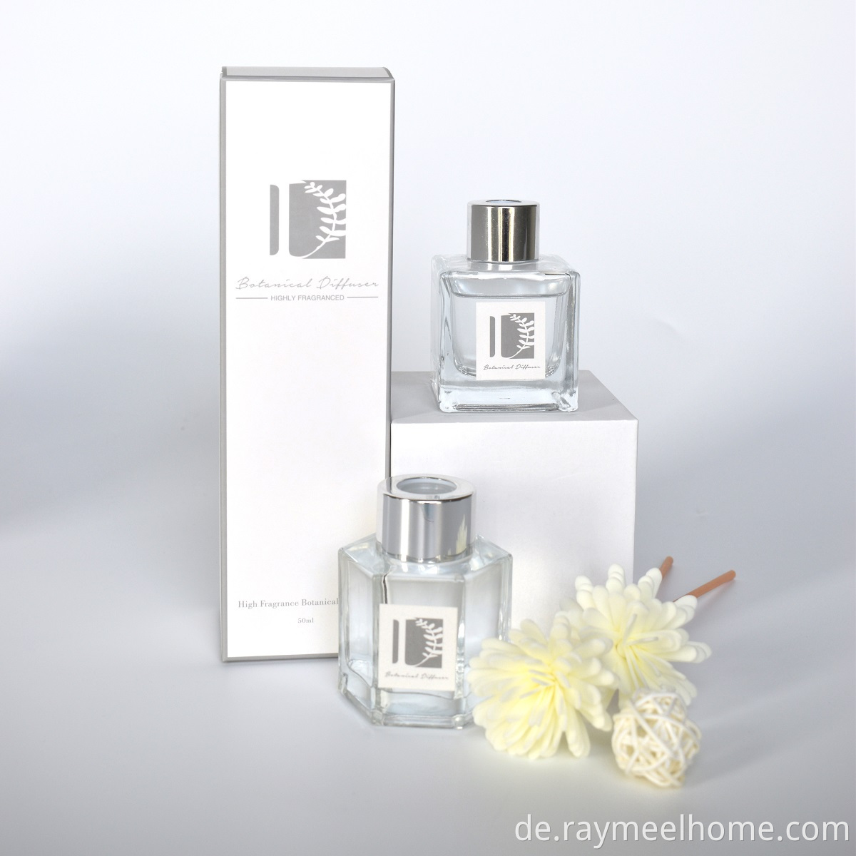 50ml square bottle reed diffuser with 2pcs foam flower 1pcs ball stick